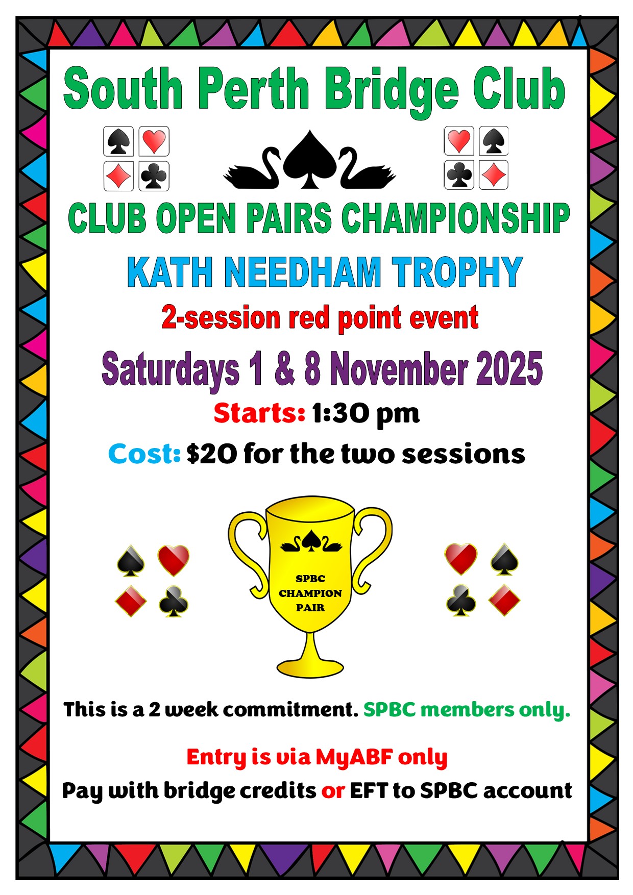 Note: Entry is restricted to members of South Perth Bridge Club.