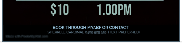 Queries contact: Sherrell Cardinal - email sherrellcardinal@me.com - Phone 0409 529319 (preferably text)