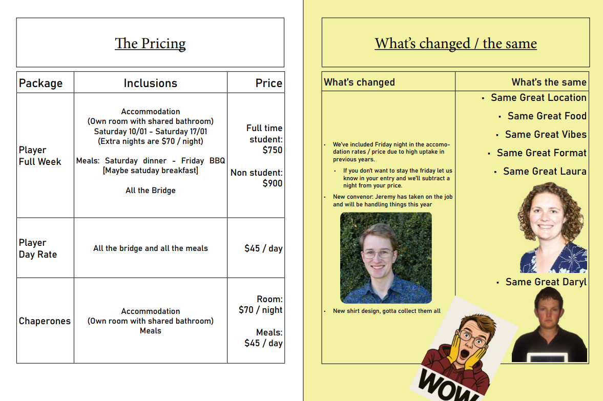 Non students: $900 (same inclusions as above).
