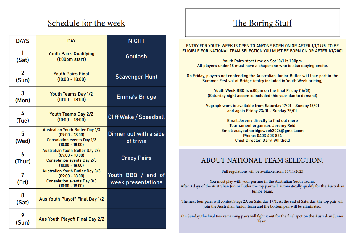 | Email: | ausyouthbridgeweek2024@gmail.com |