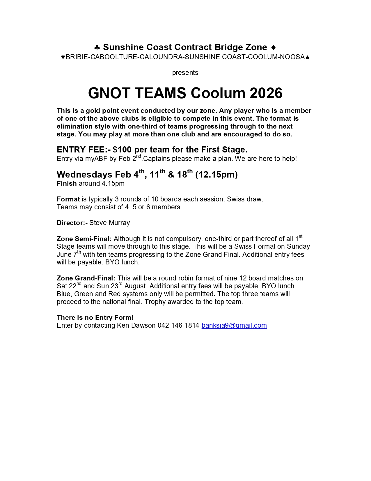 * For teams events Entry fee per player assumes a team of 4. Amounts will differ for teams of 5 or 6.