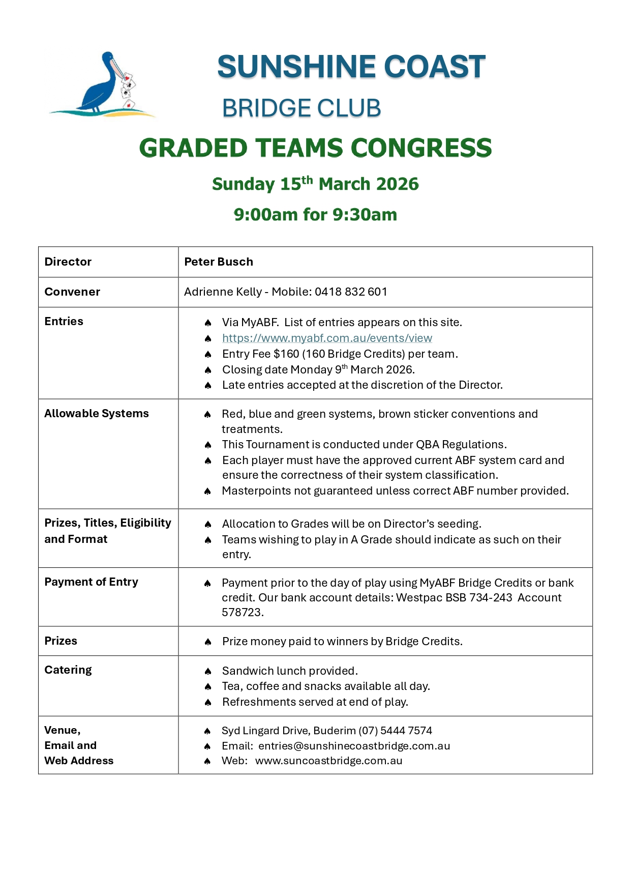 | Email: | entries@sunshinecoastbridge.com.au | |