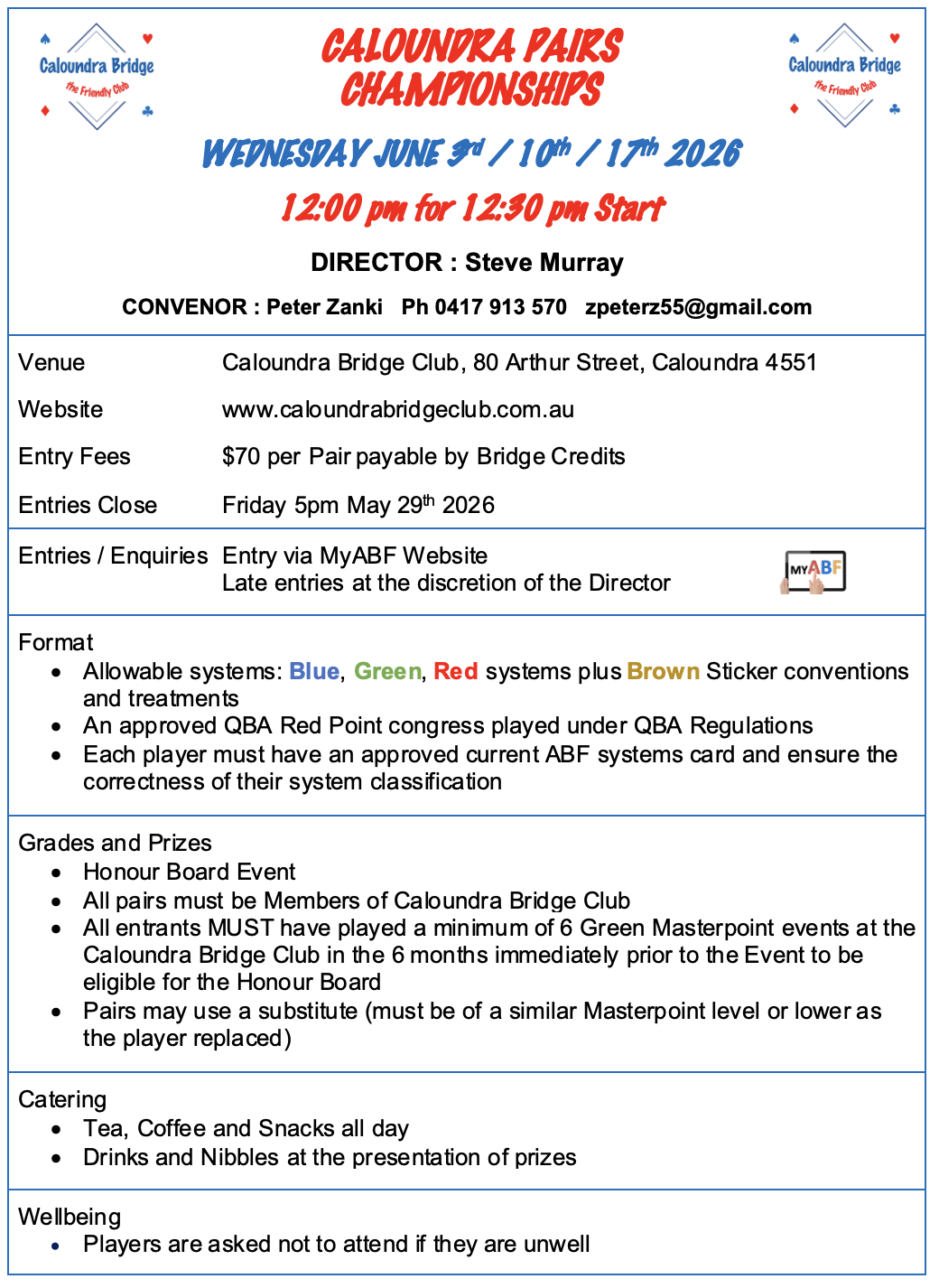 Note: Entry is restricted to members of Caloundra Contract Bridge Club Inc.