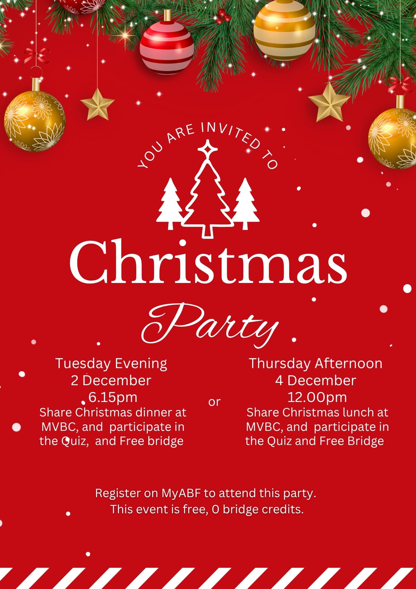 For catering and capacity reasons we require members to register for the Christmas Party.