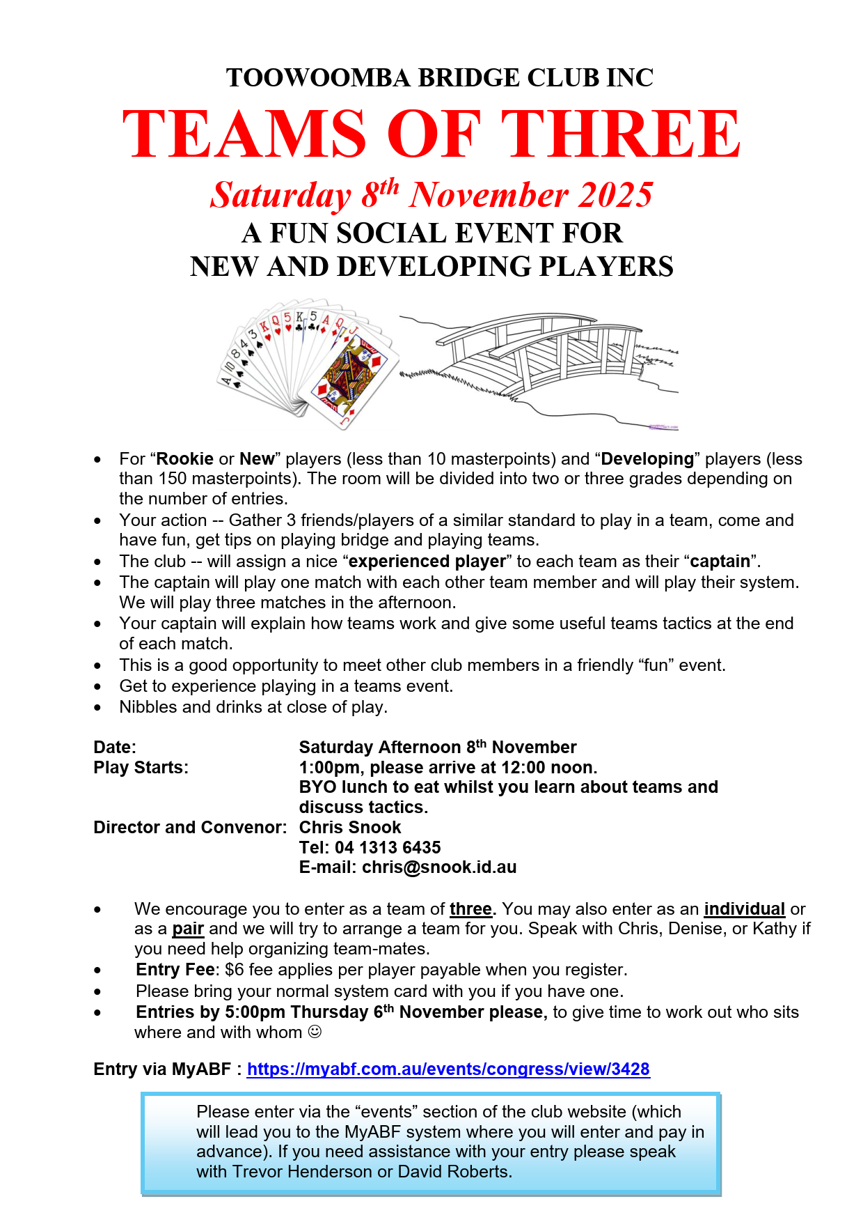 Note: Entry is restricted to members of Toowoomba Bridge Club Inc.