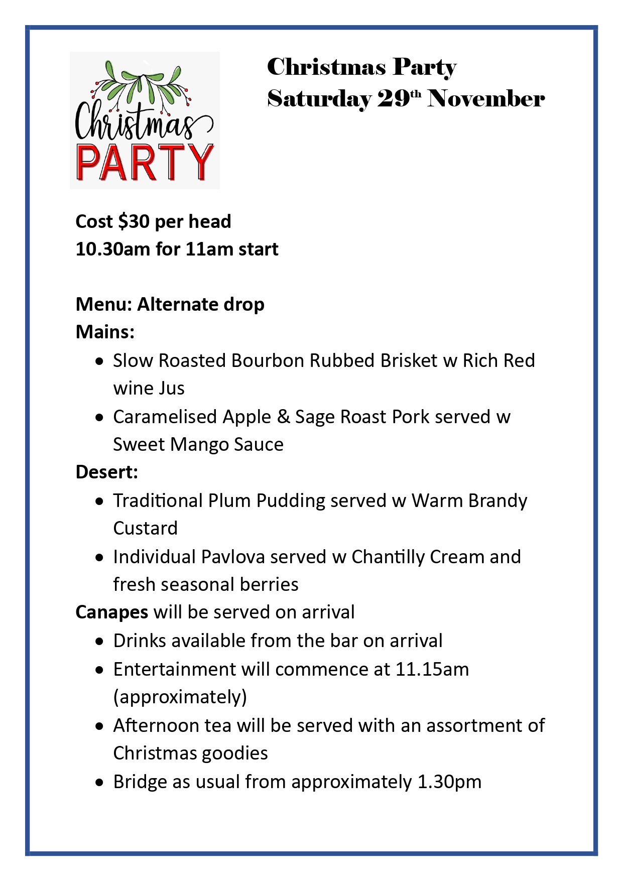 | SCBC Christmas Party | 30 credits | Saturday | 29-11-2025 - 10:30am | 2 | Enter View Entries |