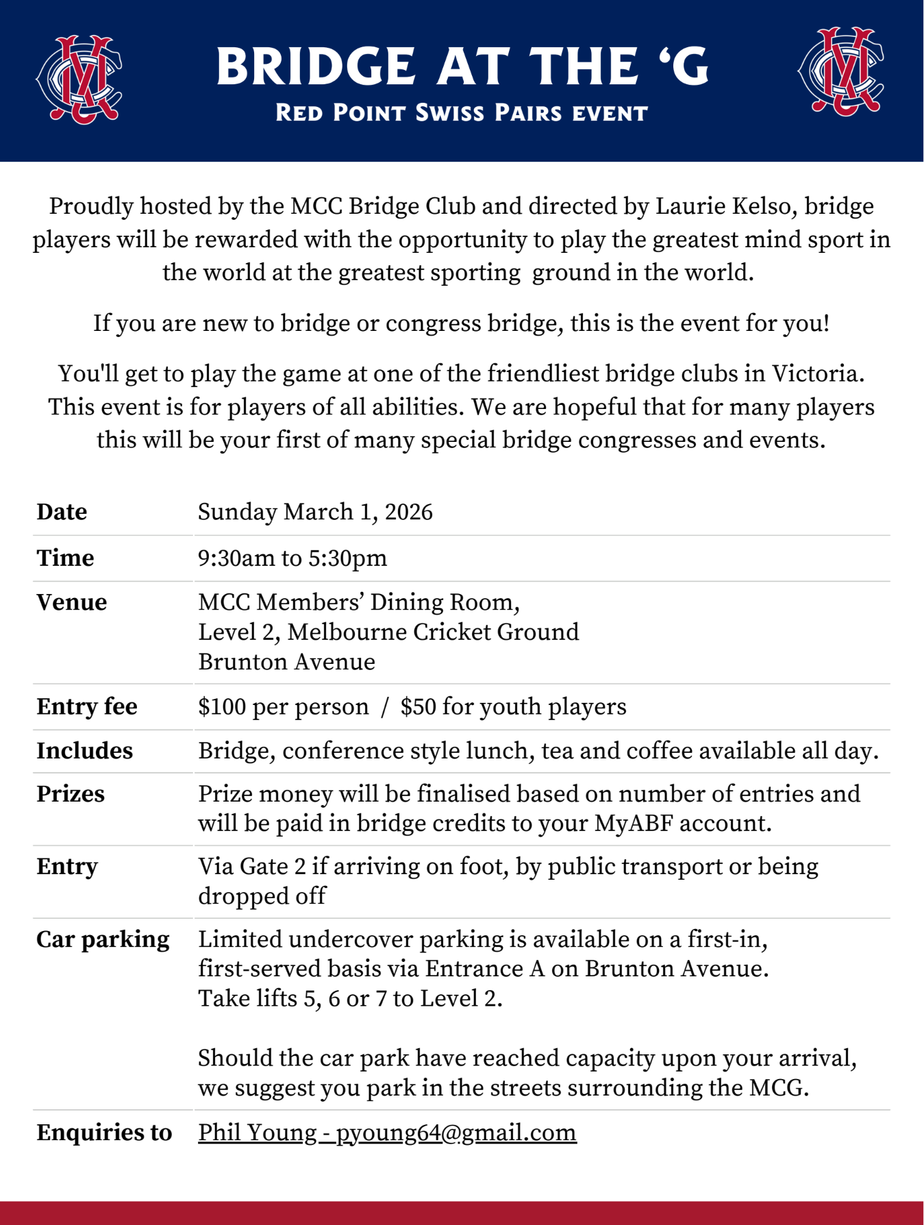 The MCC Bridge Club Committee reserves the right to reject any entry without cause.