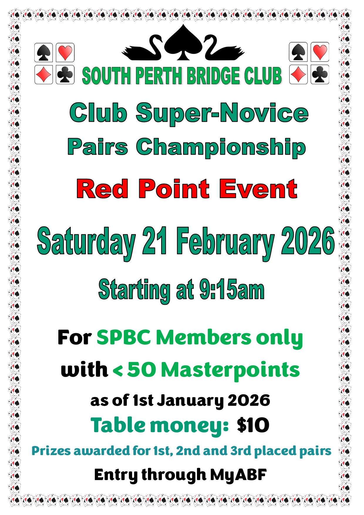 Note: Entry is restricted to members of South Perth Bridge Club.