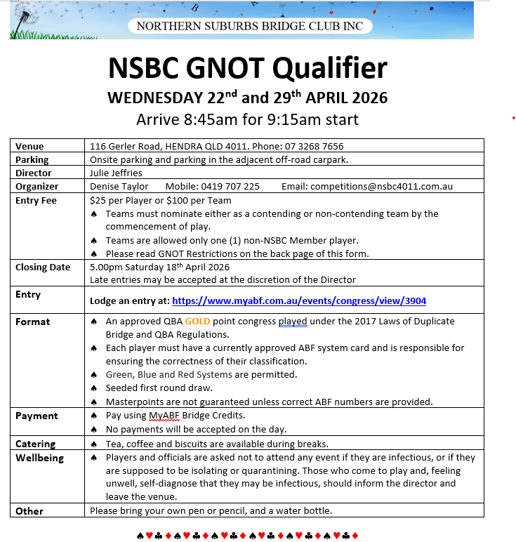 Northern Suburbs Bridge Club Inc