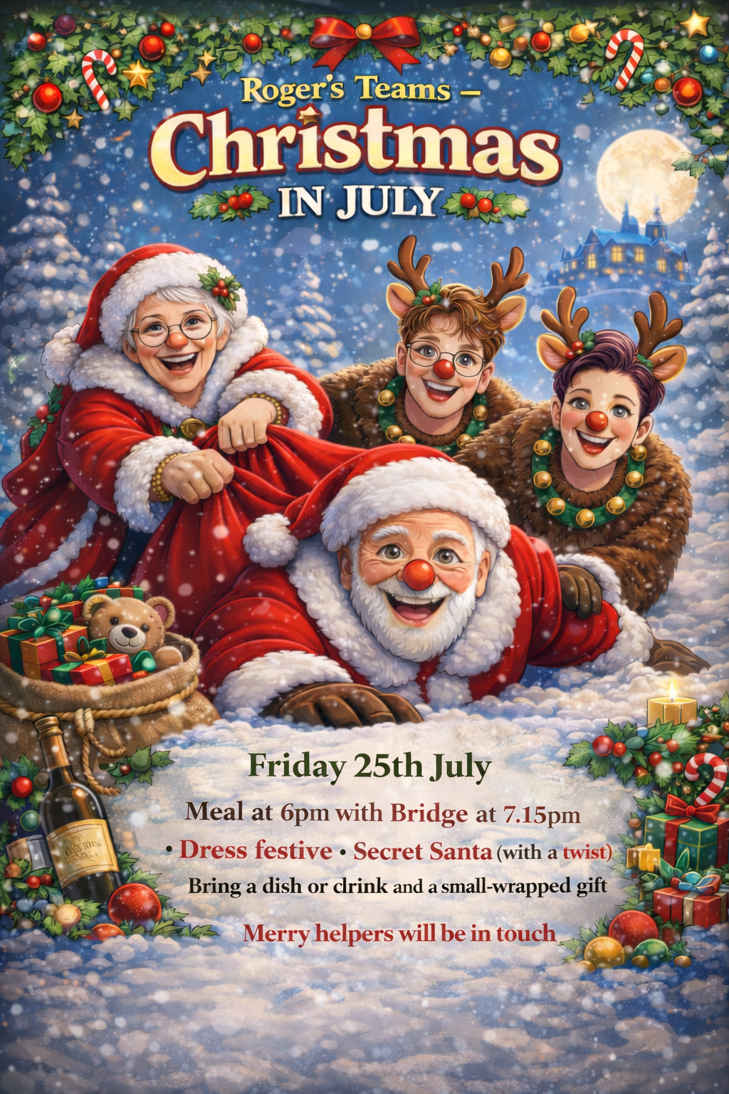 | Roger's Teams - Christmas in July | 0 credits | Friday | 17-07-2026 - 7:15pm | 0 | Enter View Entries |