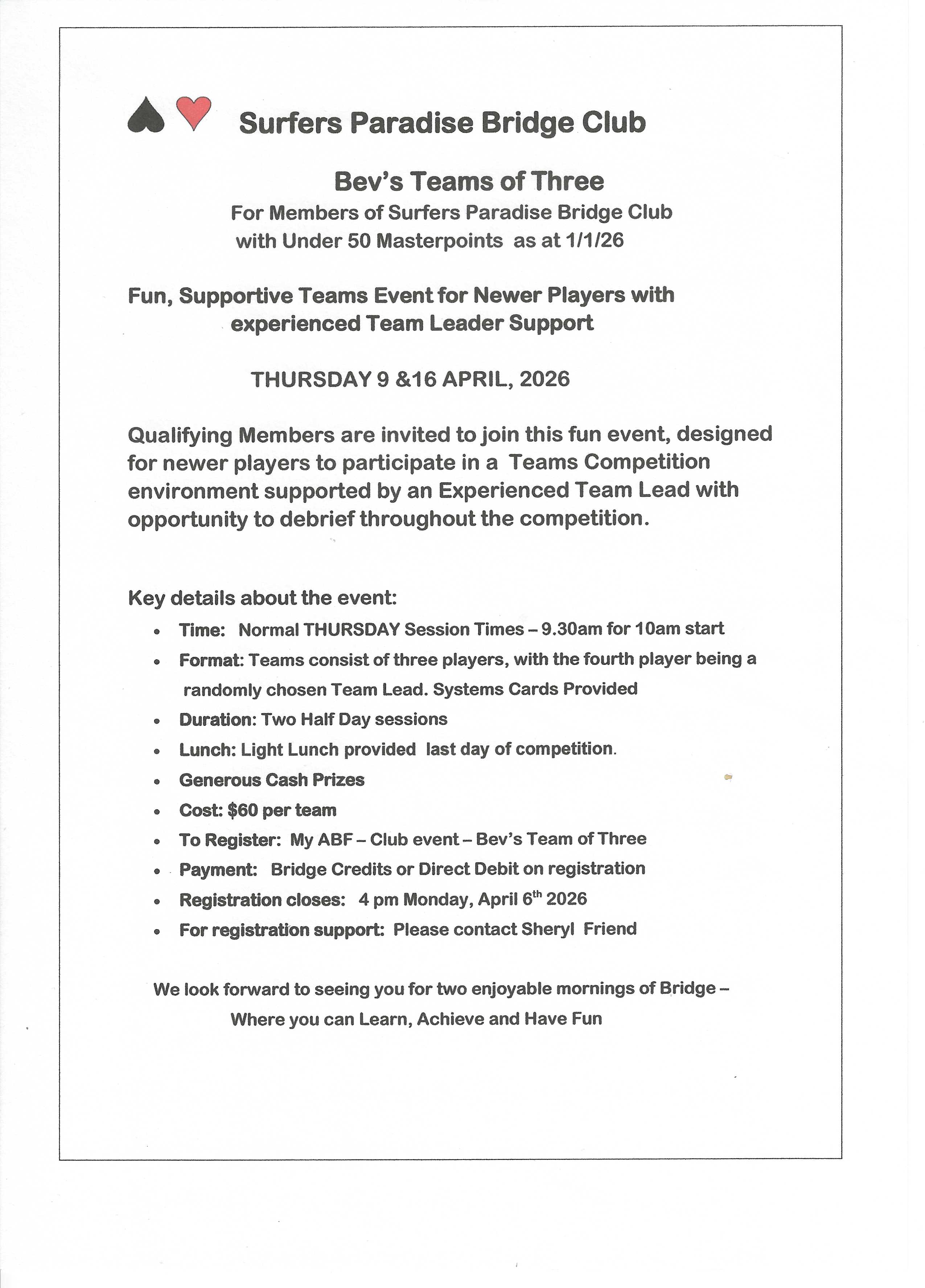 Note: Entry is restricted to members of Surfers Paradise Bridge Club Incorporated.