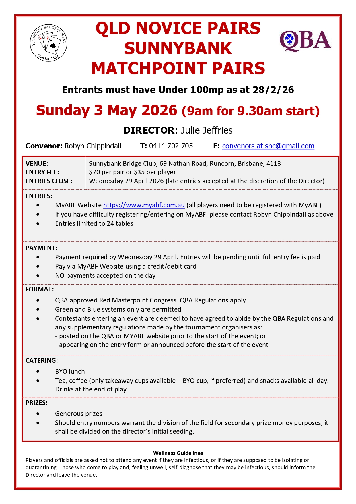 | QLD Novice Pairs | 35 credits | Sunday | 03-05-2026 - 9:30am | 7 | Enter View Entries |
