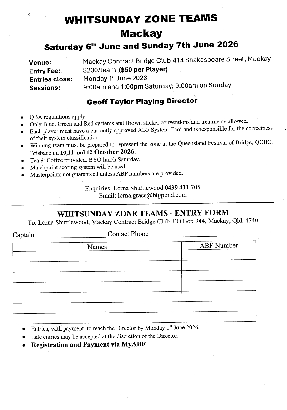 | Chief Tournament Director: | Geoff Taylor |